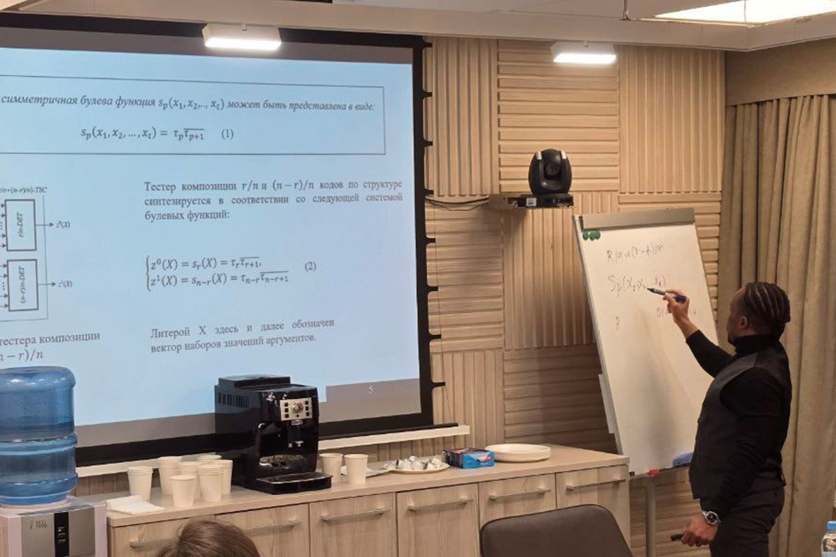 Еще одно выступление аспиранта ВШУКС Томаша Мавунгу Нкунгу было сфокусировано на цифровой инфраструктуре. В докладе «Организация диагностического обеспечения на основе композиций равновесных кодов для электронных устройств в логистике и маркетинге» были предложены инновационные подходы к повышению надёжности систем в сфере торговли и услуг.